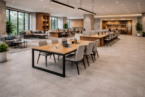 Les espaces de restauration scolaire doivent répondre à des exigences élevées en matière d’hygiène et de résistance. Les revêtements HK Flooring sont conçus pour résister aux taches, à l’humidité et aux nettoyages intensifs, tout en offrant un aspect accueillant et chaleureux. Ils contribuent à créer des lieux conviviaux favorisant le bien-être des élèves et du personnel.